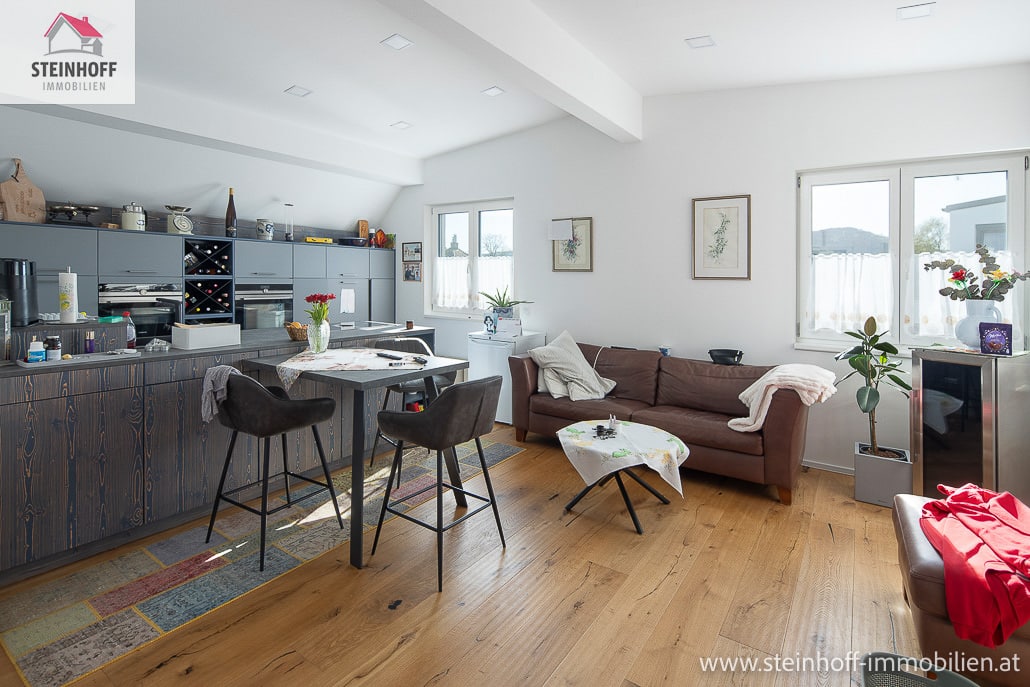 Das Dachgeschoss ist eine eigene Wohnung, mit Wohnküche, Bad/WC und Schlafzimmer. Natürlich könnte man diesen Bereich aber auch „nur“ als Masterbedroom nutzen, abhängig von Ihren Bedürfnissen und Wünschen.