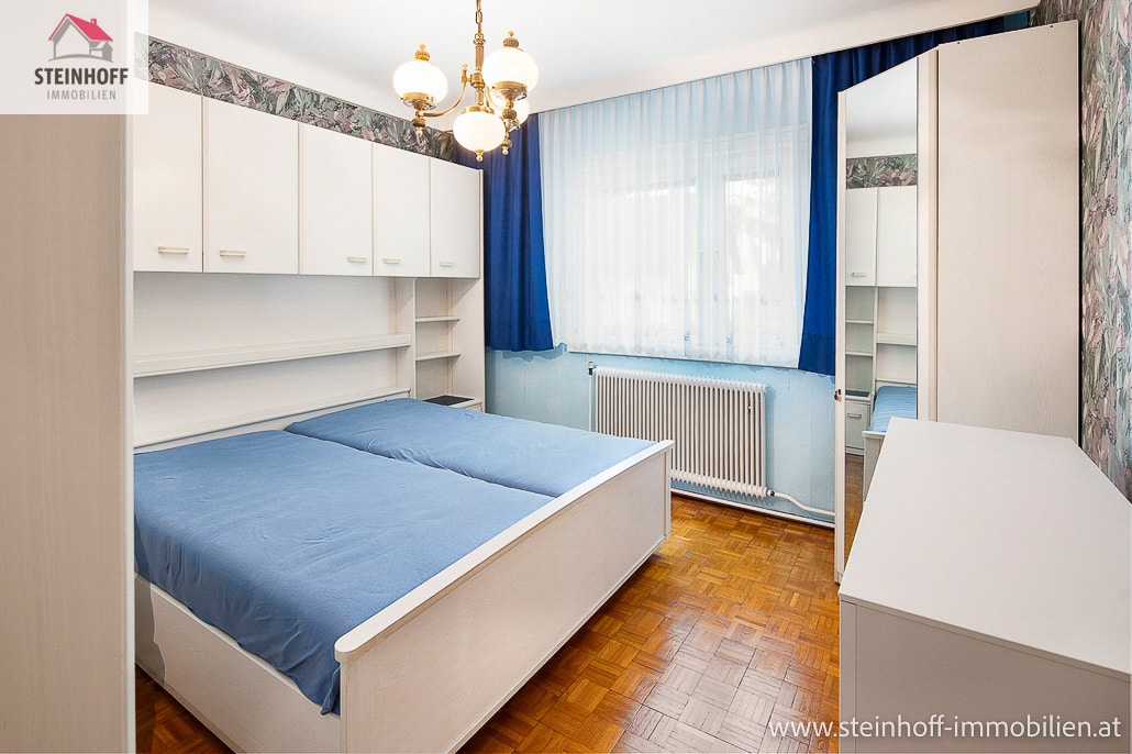 Sie betreten Ihr neues zu Hause über wenige Stiegen und befinden sich dann im Vorraum. Von hier geht es in das Garderobenzimmer, ein Schlafzimmer und ins Wohn- sowie das Esszimmer.