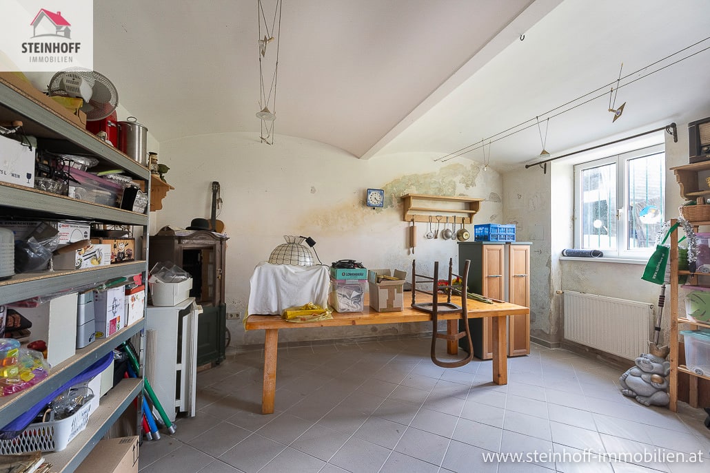 Hier befinden sich 3 große Räume, ideal für diverse Hobbys, eventuell für Künstler, oder einfach nur als Lager. Auch ein WC befindet sich im Keller.