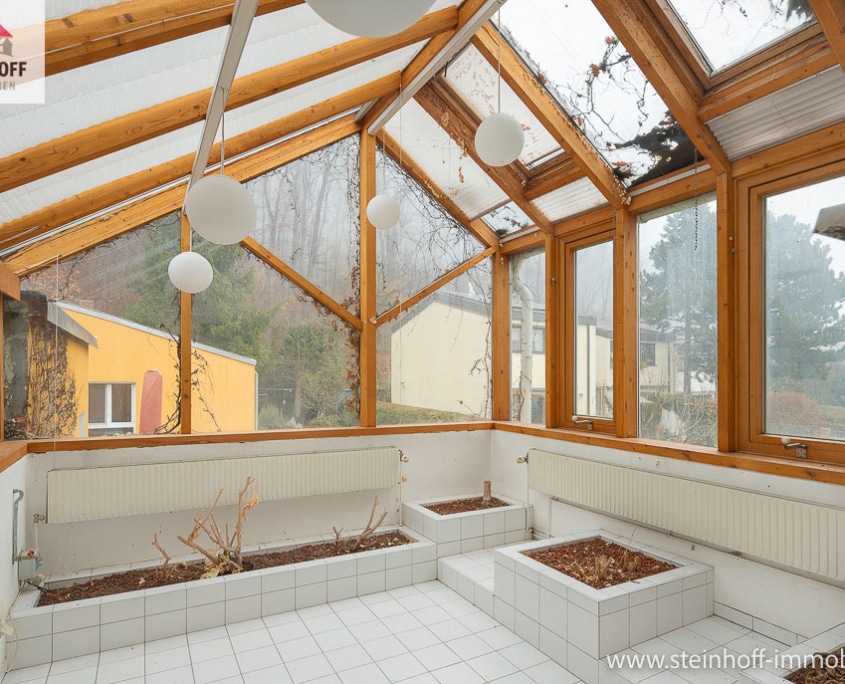 Im Obergeschoß befinden sich 3 Schlafzimmer, ein Bad, die Loggia und ein weiterer Wintergarten.