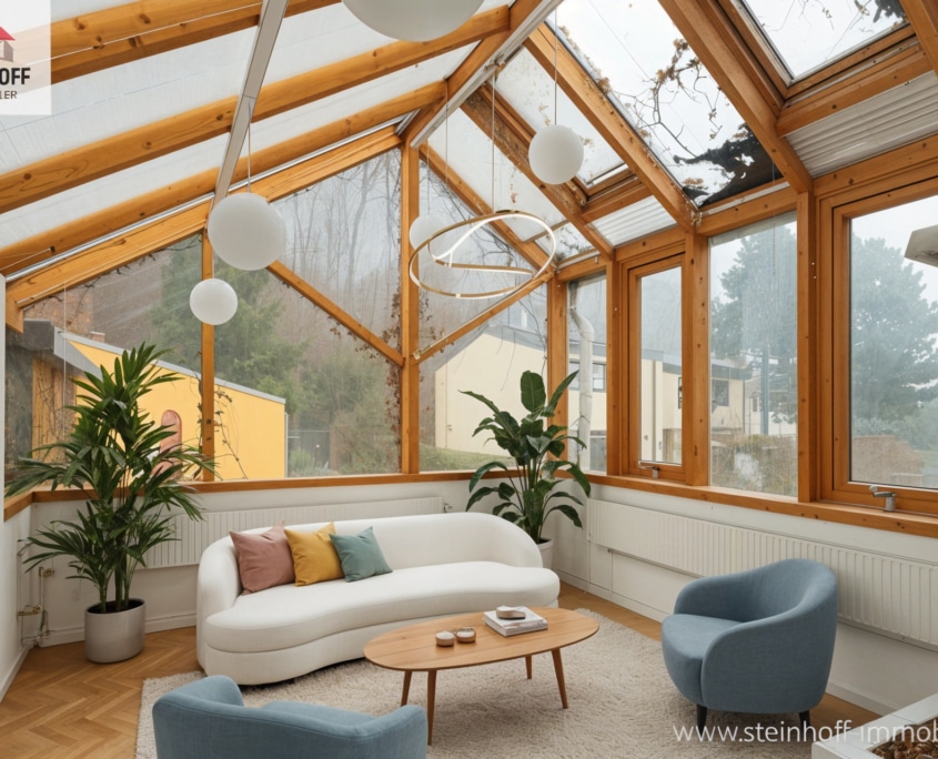 Im Erdgeschoß befindet sich der Wohnbereich mit der Küche, dem Essplatz und dem Wohnzimmer. Von hier kommen Sie sowohl in den West- als auch in den Ostgarten. Natürlich gibt es hier ein WC. Highligt ist der Wintergarten!